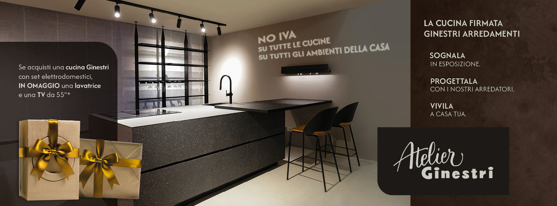 Acquistando una cucina Ginestri con set elettrodomestici, avrai IN OMAGGIO una Lavatrice e una TV 55”.